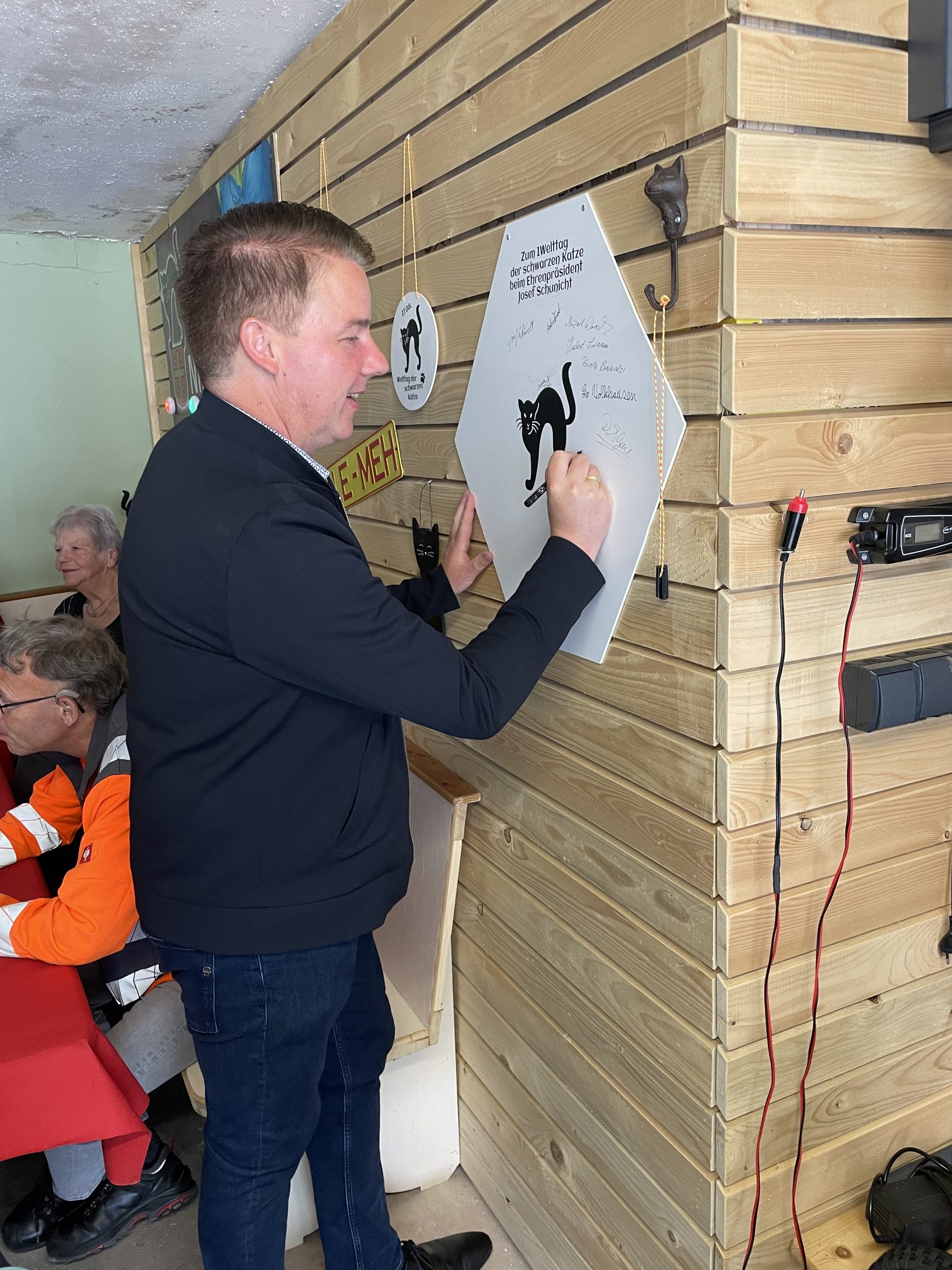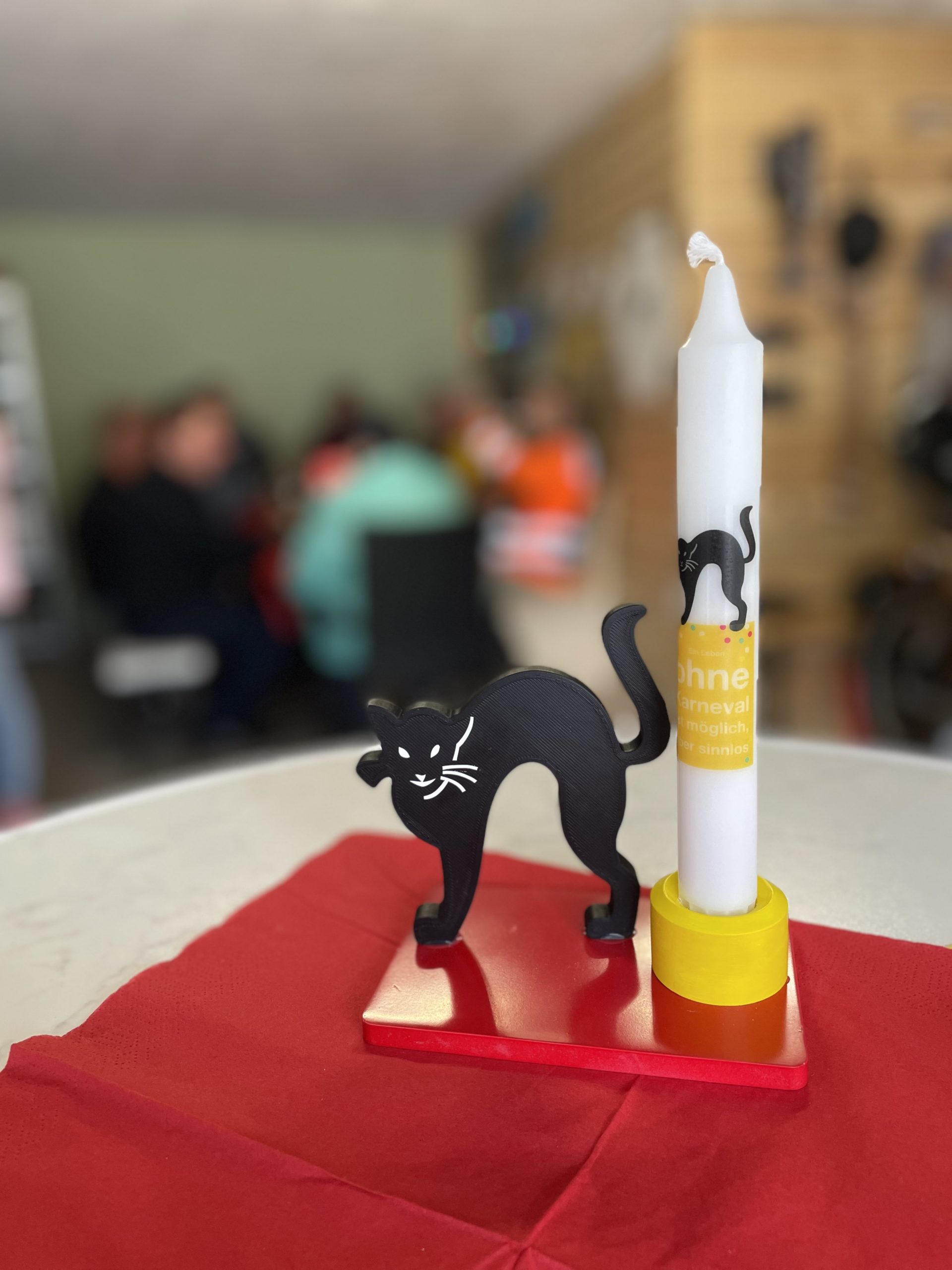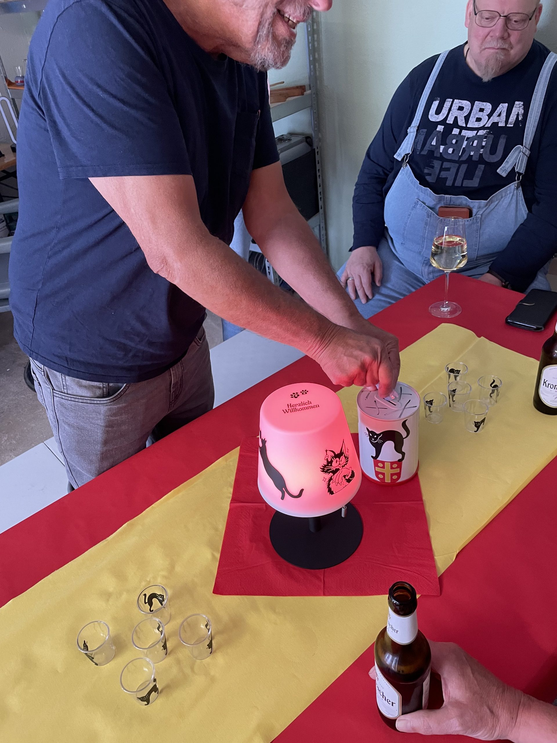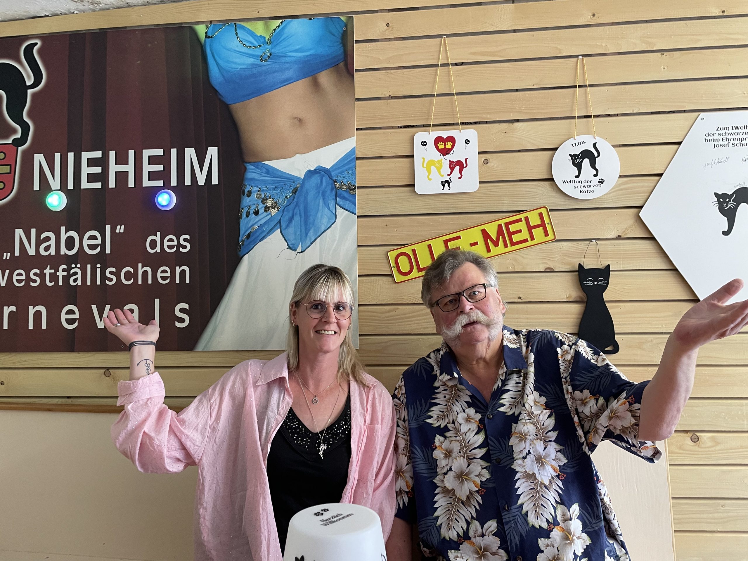 Manchen wurde ein wenig schwer ums Gemüt, als der 1. Vorsitzende Stephan von Kölln und Sebastian Wessler das scheidende Prinzenpaar Frank (III.) Weiß und Jutta (II.) Böddeker mit viel herzlicher Dankbarkeit verabschiedete, was Ihnen das Narrenvolk wenig später mit donnerndem Applaus gleichtat. Bevor das Geheimnis um das neue Prinzenpaar gelüftet wurde, sorgte die Versteigerung der schwarzen Holzkatze mit Stadtwappen, die vom alten Prinzenwagen stammt, für mächtig Spannung. Dabei schaukelte sich die Summe stetig nach oben, weil vor allem StKG-Präsident Axel Remmert-Bobe kräftig mitbot. Am Ende sicherte sich Thomas Menne das begehrte Unikat.