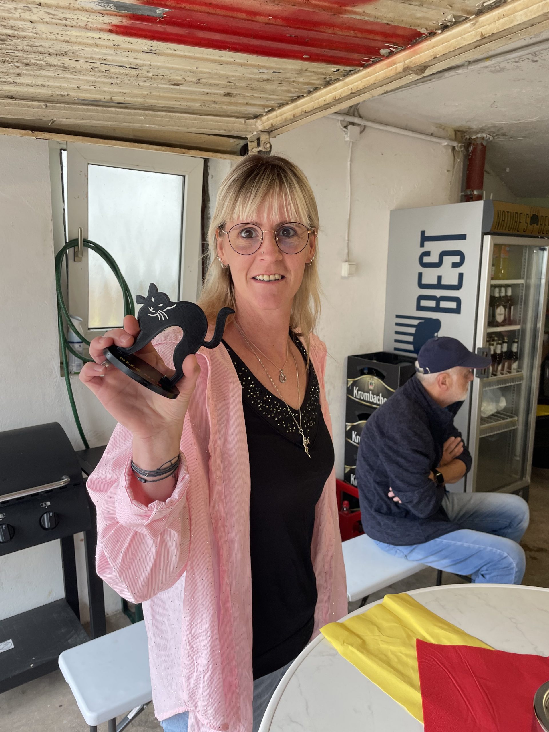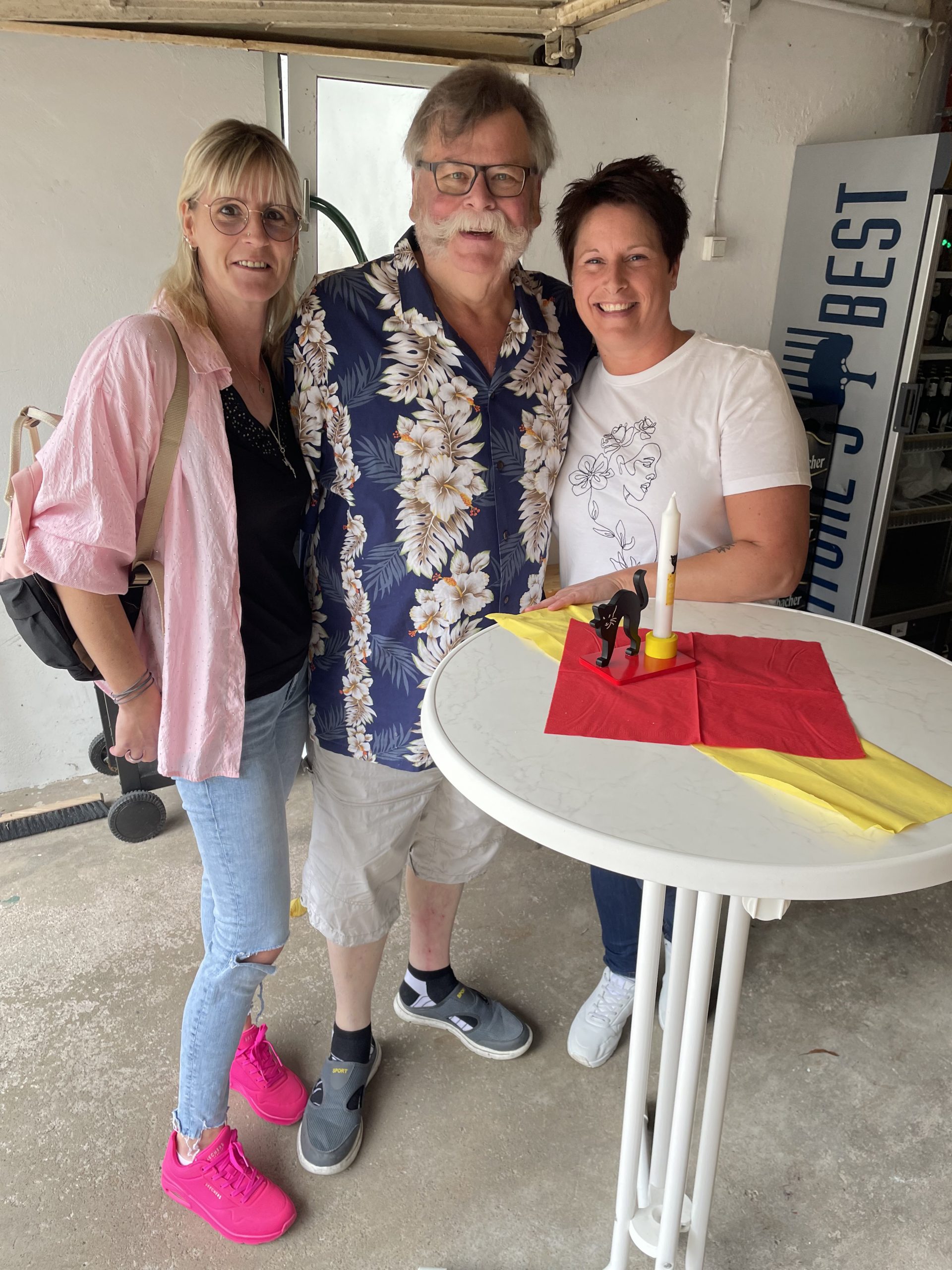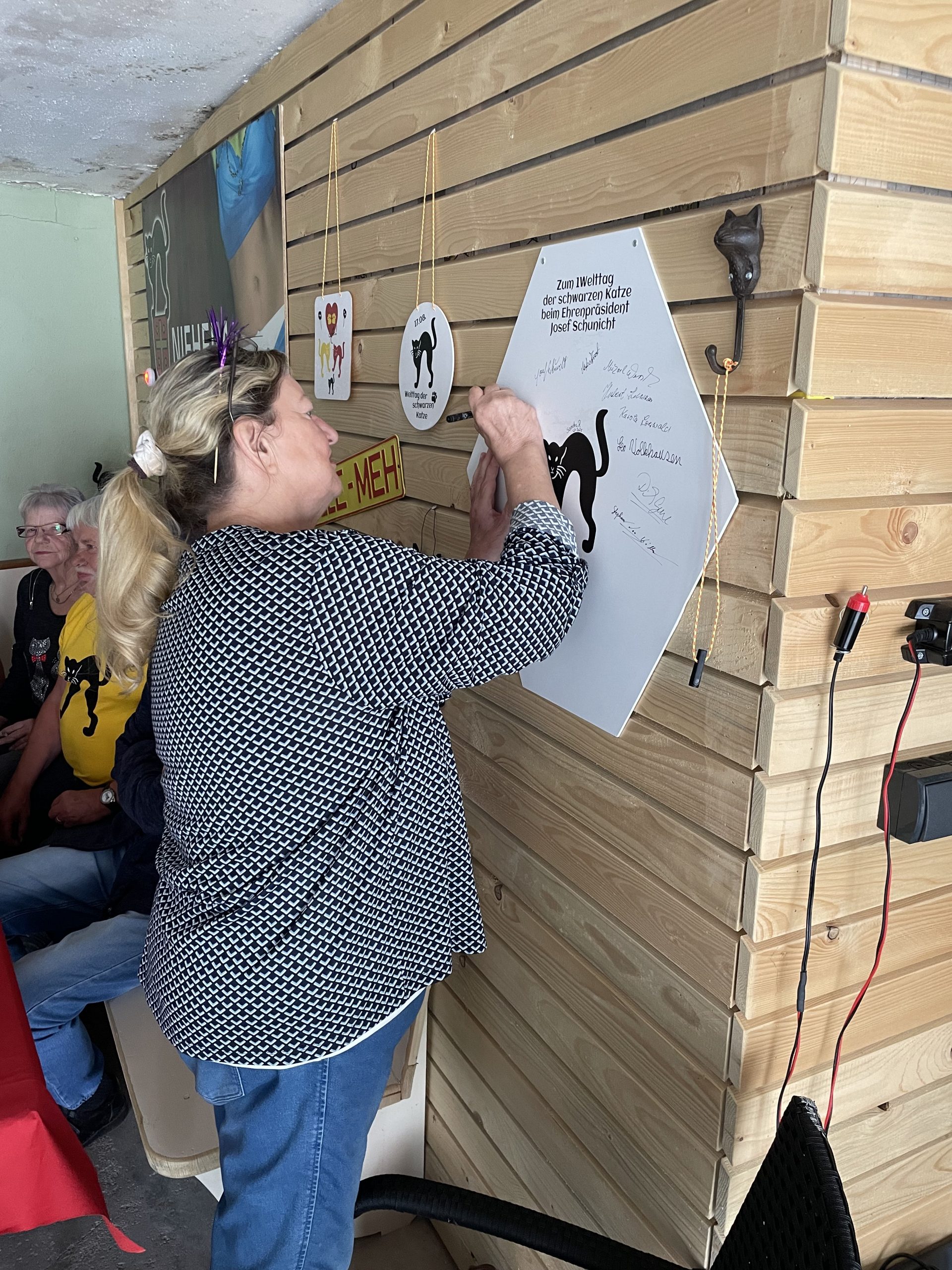 Manchen wurde ein wenig schwer ums Gemüt, als der 1. Vorsitzende Stephan von Kölln und Sebastian Wessler das scheidende Prinzenpaar Frank (III.) Weiß und Jutta (II.) Böddeker mit viel herzlicher Dankbarkeit verabschiedete, was Ihnen das Narrenvolk wenig später mit donnerndem Applaus gleichtat. Bevor das Geheimnis um das neue Prinzenpaar gelüftet wurde, sorgte die Versteigerung der schwarzen Holzkatze mit Stadtwappen, die vom alten Prinzenwagen stammt, für mächtig Spannung. Dabei schaukelte sich die Summe stetig nach oben, weil vor allem StKG-Präsident Axel Remmert-Bobe kräftig mitbot. Am Ende sicherte sich Thomas Menne das begehrte Unikat.
