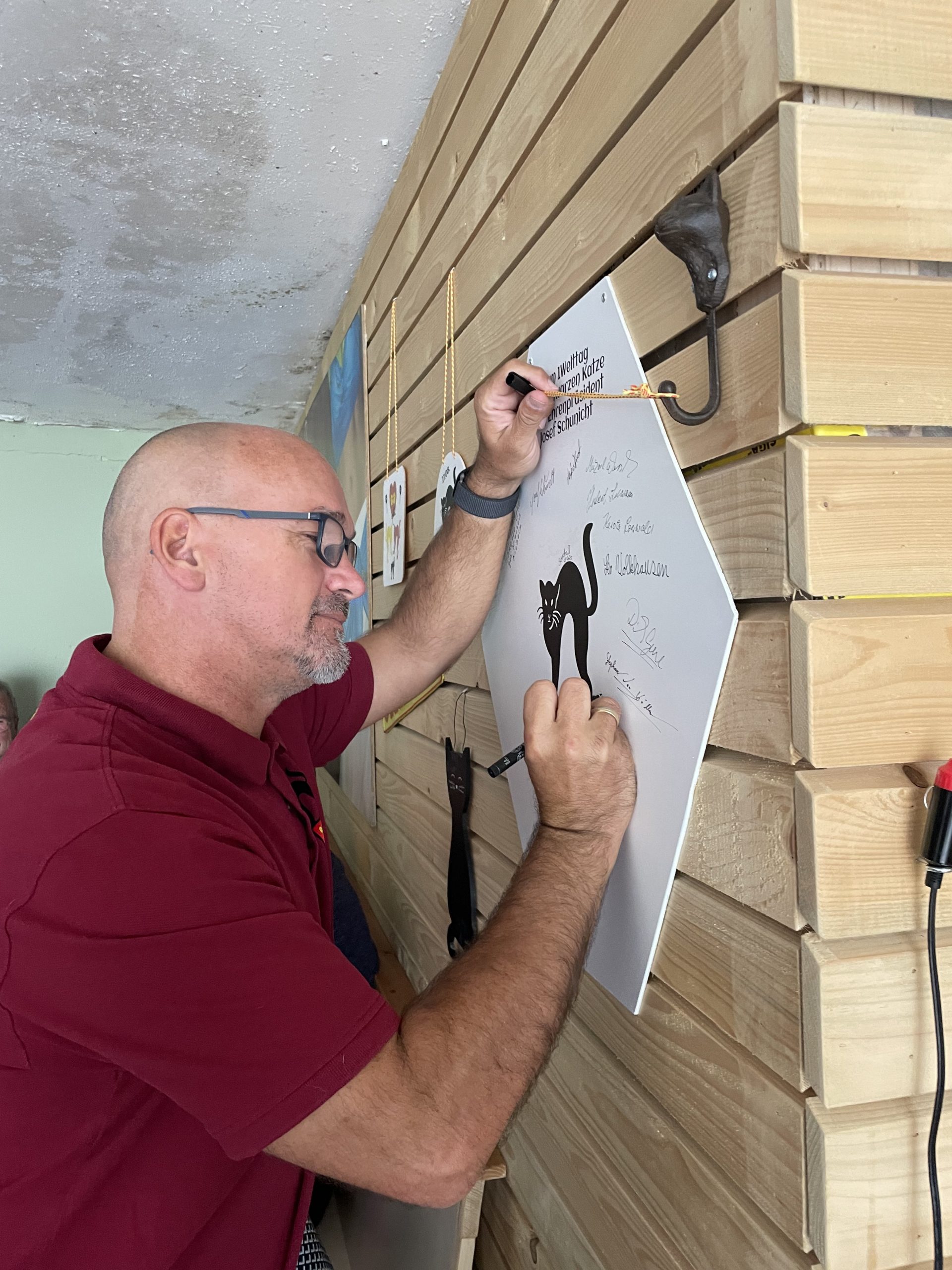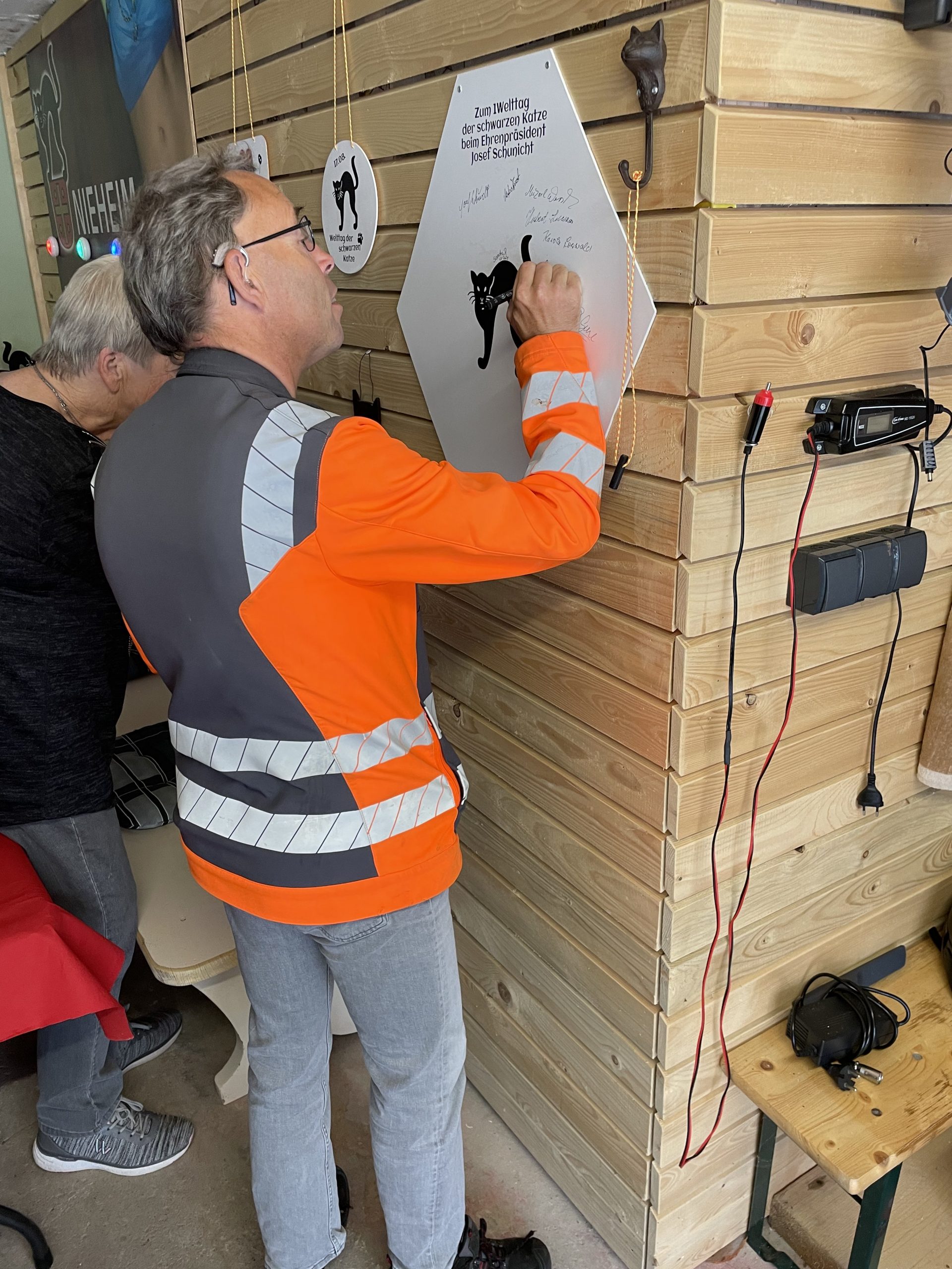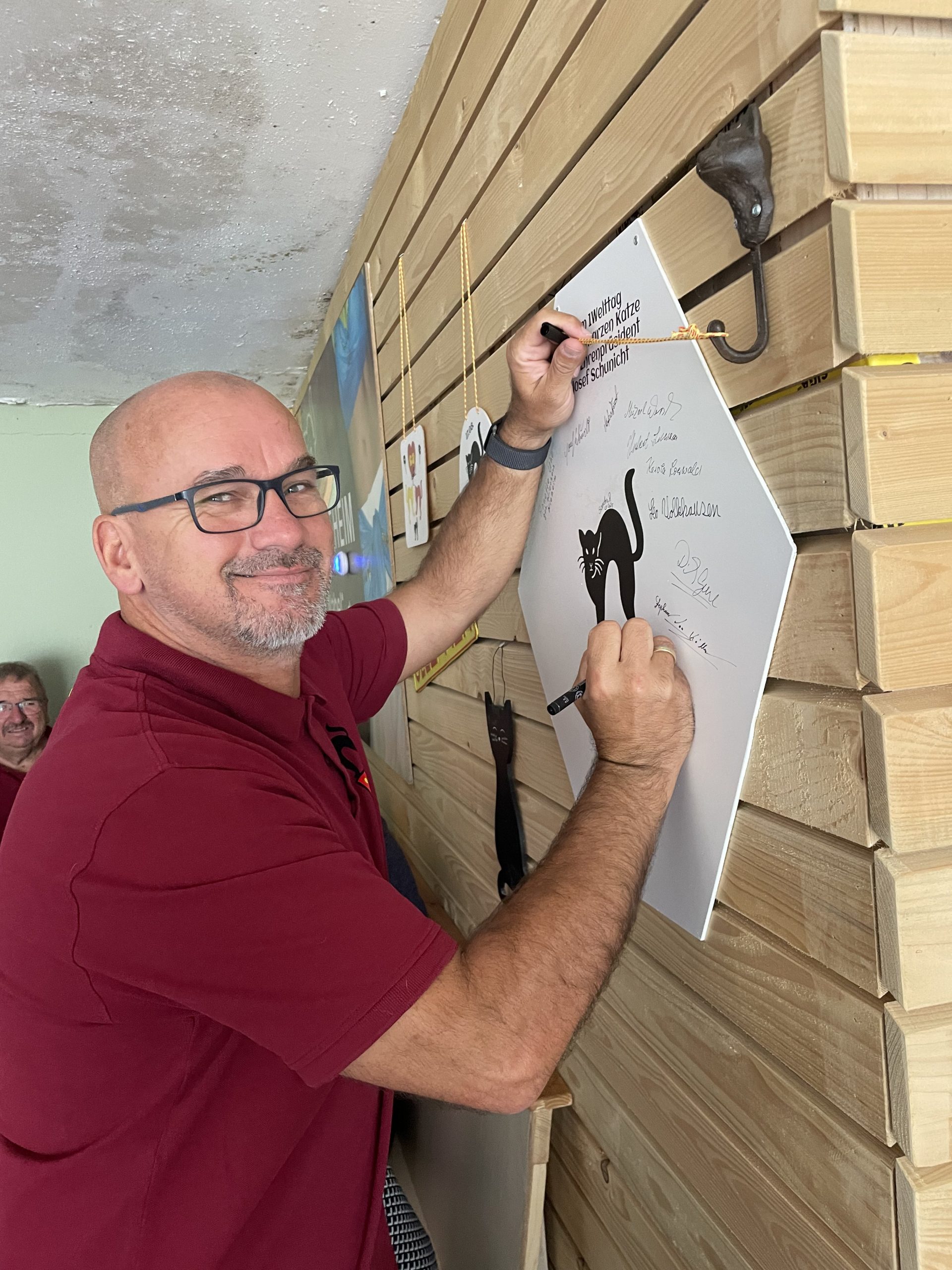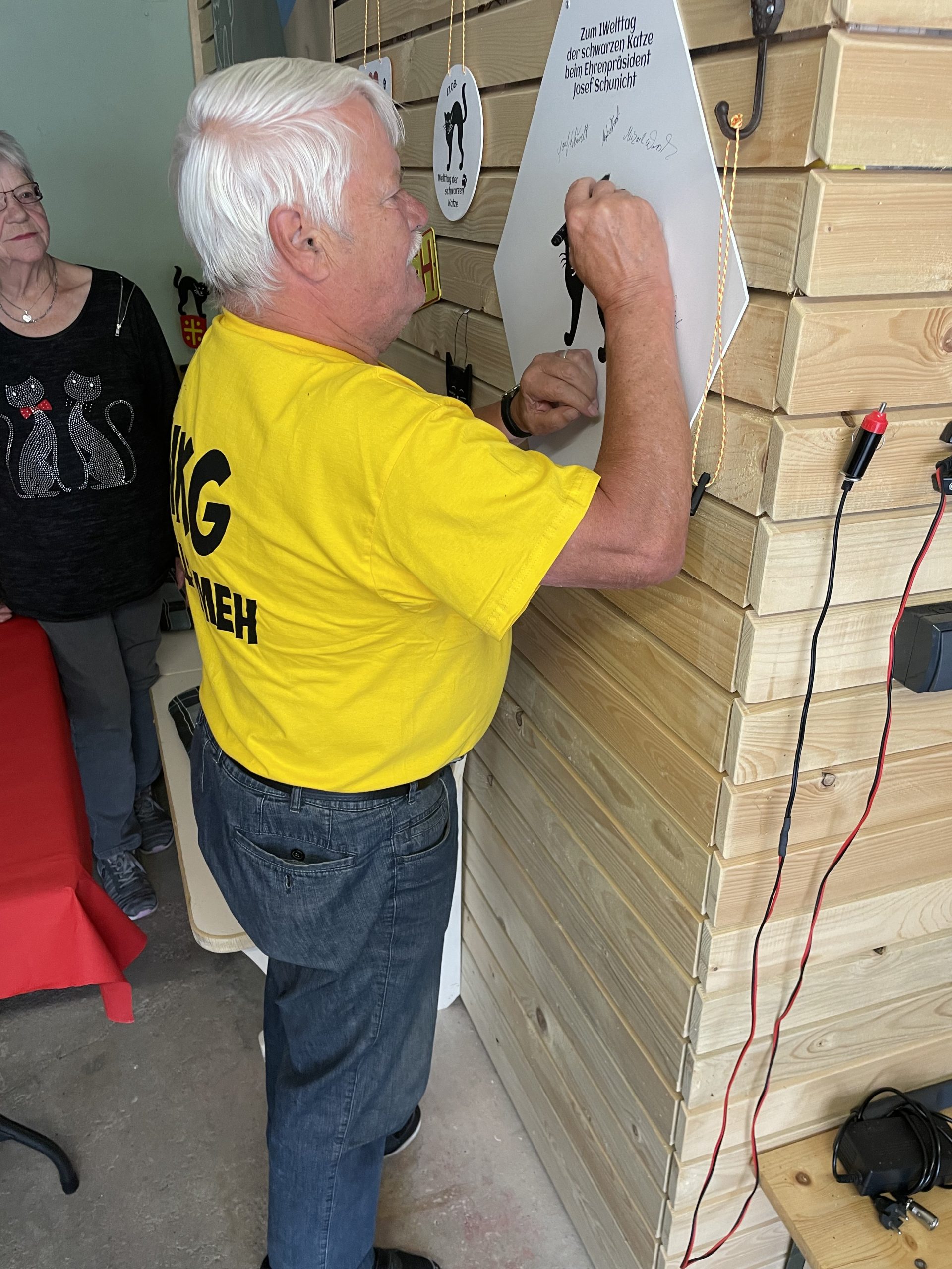 Manchen wurde ein wenig schwer ums Gemüt, als der 1. Vorsitzende Stephan von Kölln und Sebastian Wessler das scheidende Prinzenpaar Frank (III.) Weiß und Jutta (II.) Böddeker mit viel herzlicher Dankbarkeit verabschiedete, was Ihnen das Narrenvolk wenig später mit donnerndem Applaus gleichtat. Bevor das Geheimnis um das neue Prinzenpaar gelüftet wurde, sorgte die Versteigerung der schwarzen Holzkatze mit Stadtwappen, die vom alten Prinzenwagen stammt, für mächtig Spannung. Dabei schaukelte sich die Summe stetig nach oben, weil vor allem StKG-Präsident Axel Remmert-Bobe kräftig mitbot. Am Ende sicherte sich Thomas Menne das begehrte Unikat.